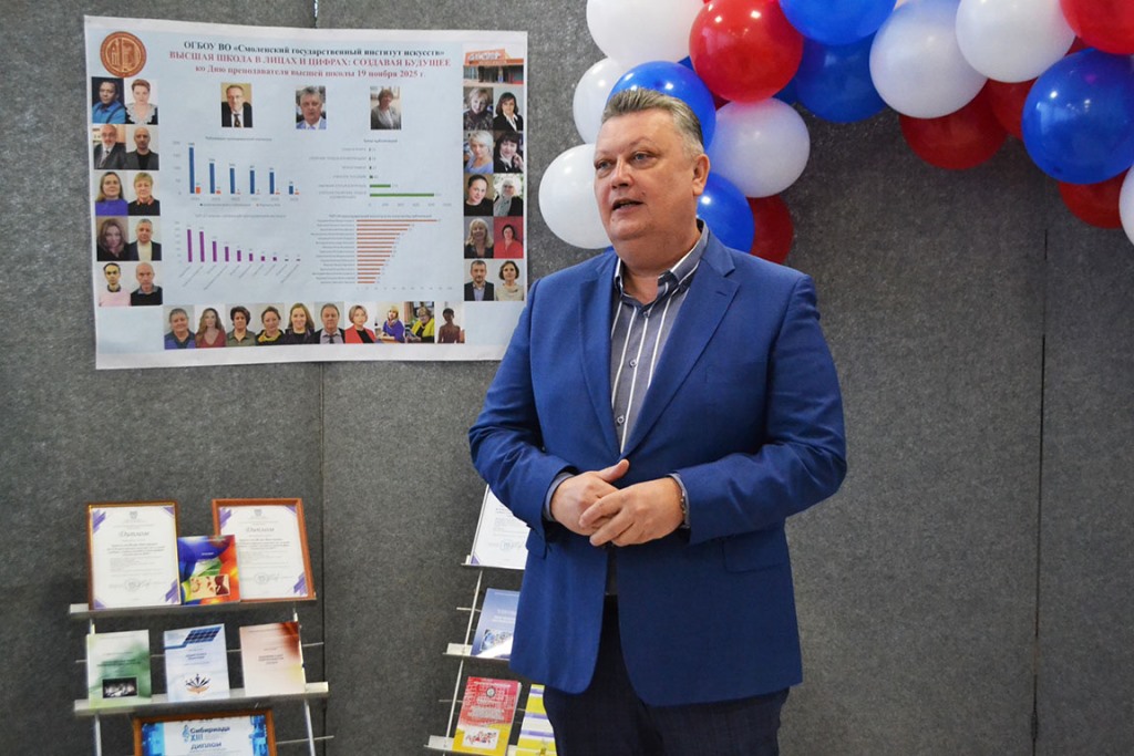 Открыл это торжественное мероприятие ректор Смоленского государственного института искусств – Алексей Николаевич Серый. С тёплыми словами поздравлений выступила заведующая кафедрой гуманитарных и социально-экономических наук – Юлия Витальевна Иванова. Главными инициаторами проведения целого ряда мероприятий, посвященных Дню преподавателя высшей школы стали – профессор, доктор экономических наук Юлия Владимировна Гнездова и доцент, кандидат педагогических наук Елена Евгеньевна Подгузова.