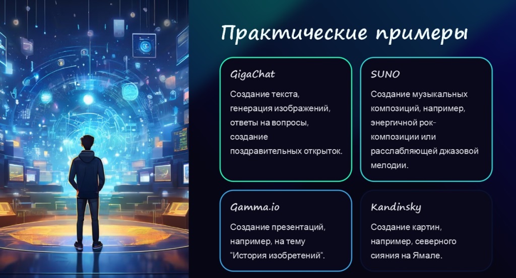 Лектор обозначила основные понятия и определения ИИ, перечислила сферы применения ИИ, подробно описала ИИ в области креативных индустрий. Лекция прошла динамично и увлекательно. Студенты выразили интерес и заинтересованность к данной теме.