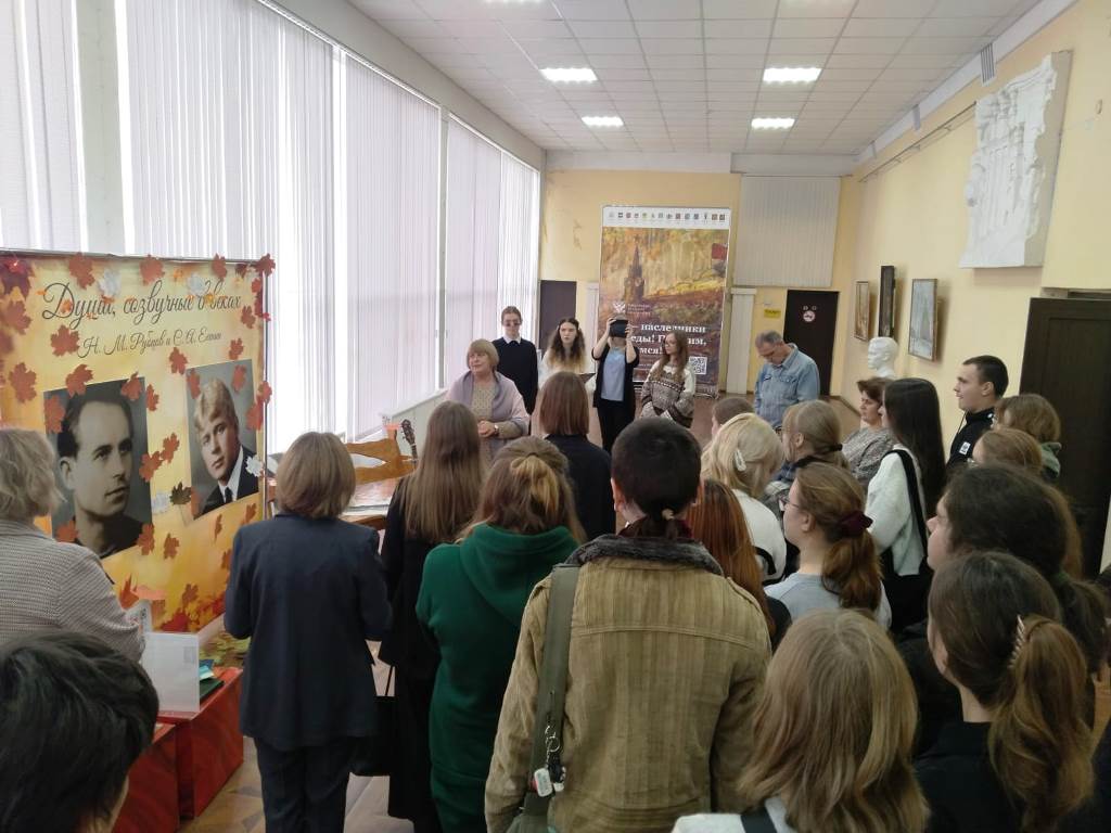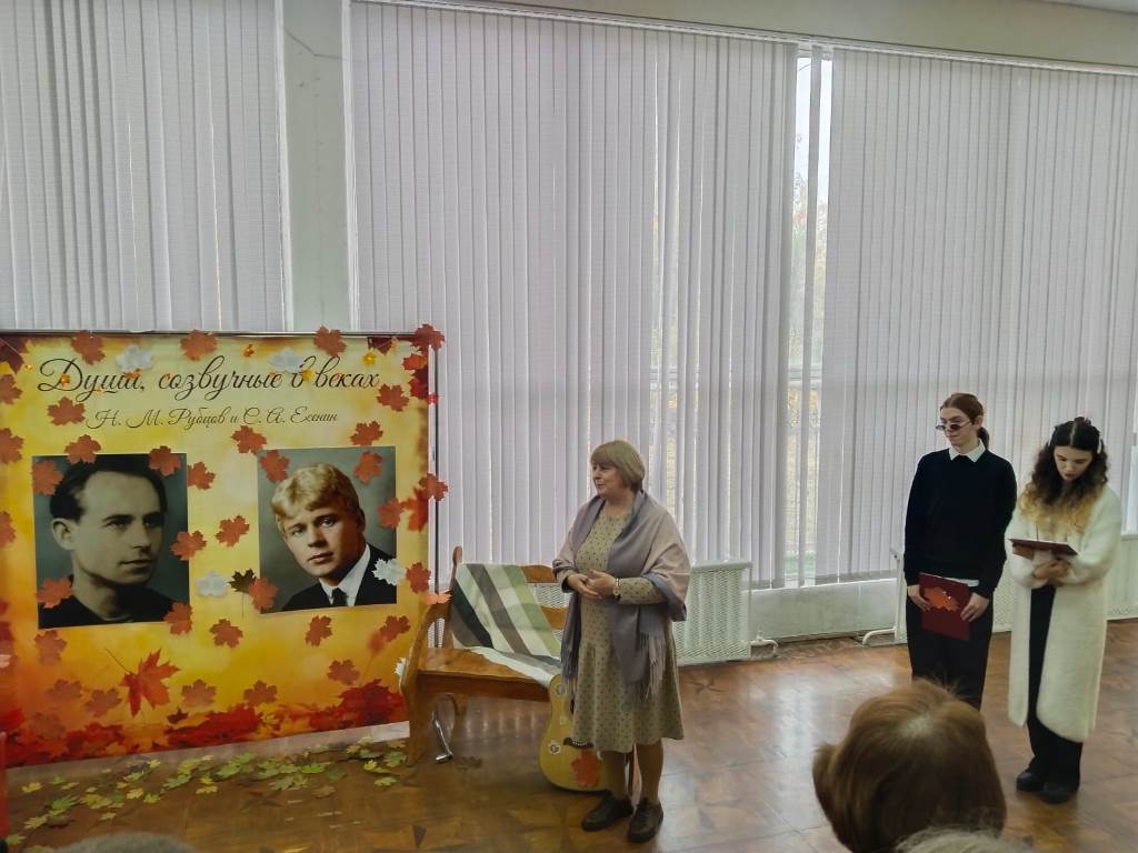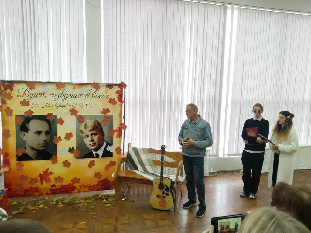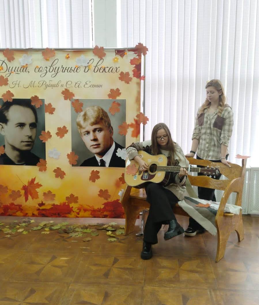 С 6 по 10 октября в фойе Института Искусств царила атмосфера поэзии и вдохновения. Здесь проходила библиотечная выставка "Души, созвучные в веках", посвященная двум выдающимся русским лирикам – Сергею Есенину и Николаю Рубцову. Организаторами выступили студенты 2 курса (направление подготовки «Библиотечно-информационная деятельность») под руководством преподавателей кафедры библиотечно-информационной деятельности (заведующая кафедрой Т. Н. Ладожина, кандидат педагогических наук). Несмотря на то, что юбилеи поэтов приходятся на разные даты – 130-летие Есенина в 2025 году и 90-летие Рубцова в 2026 году – организаторы решили объединить эти события, подчеркнув близость их поэтического мира. Оба мастера слова воспевали красоту русской природы, родину и глубокие человеческие чувства.