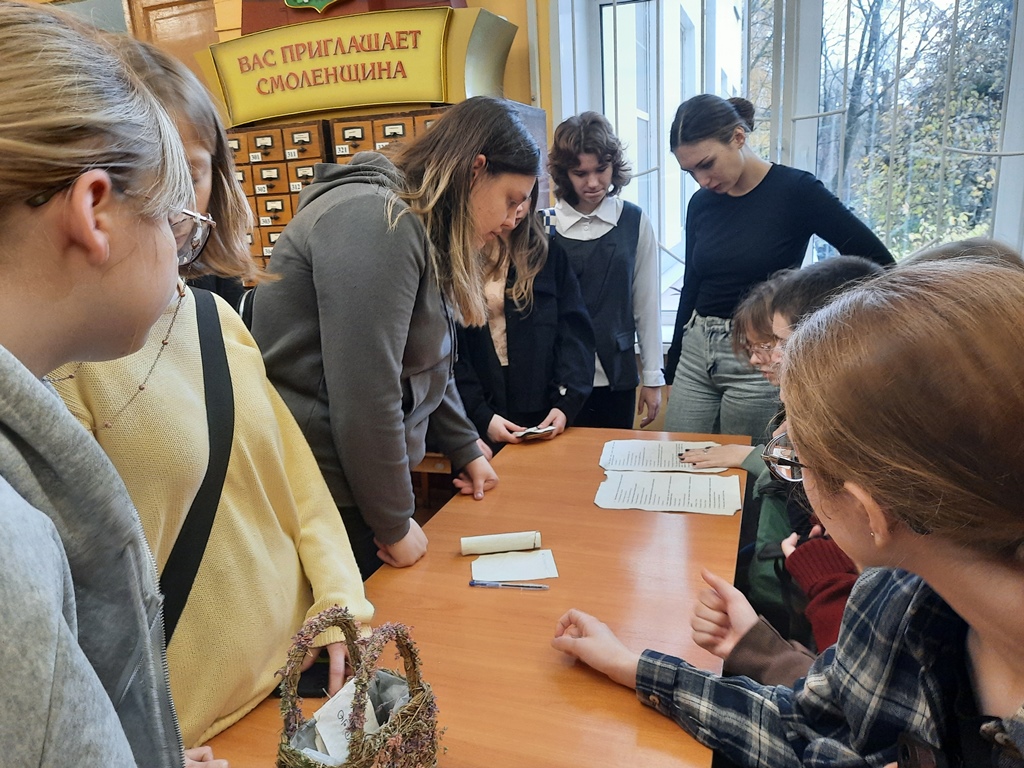 27 октября студенты 1 курса направления "Библиотековедение" отделения среднего профессионального образования Смоленского государственного института искусств стали участниками исторического квеста «Тайна кривичского клада». Организаторы предложили первокурсникам познакомиться с библиотечным делом в новом интерактивном формате. Преимуществом квеста стало погружение в сложный механизм библиотечной деятельности: от ознакомления с каталогами и картотеками до работы с электронными ресурсами и книжными памятниками. В ходе мероприятия студенты проходили испытания на шести станциях, выполняли увлекательные задания, чтобы найти «клад кривичей».