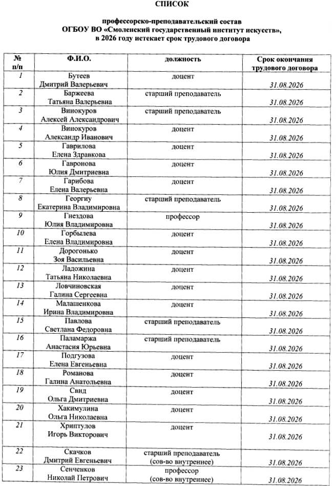 Список ППС института, у которых в 2026 году истекает срок трудового договора