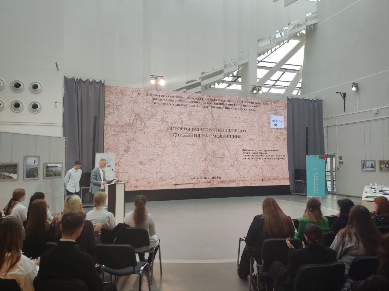 Тема исследования Артема Хохлова – «История создания и развития поискового движения Смоленщины», выполненная под руководством профессора кафедры музеологии и культурного наследия, доктора педагогических наук Н.П. Сенченкова, привлекла особое внимание аудитории. Его работа удостоена Диплома I-ой степени, что стало заслуженным признанием его глубокого погружения в тему.