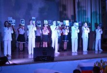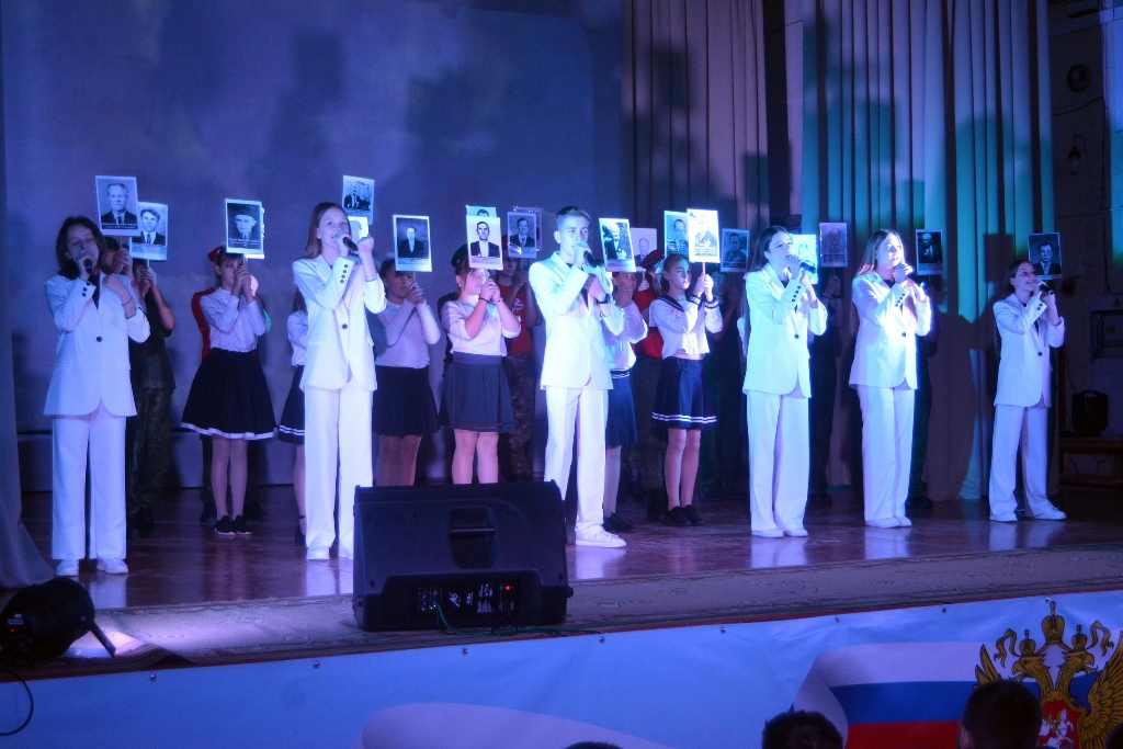 Одним из самых трогательных номеров стала песня «Белые шарики» с участием обучающихся Глинковской и Ершчской школ с портретами участников Великой Отечественной войны.