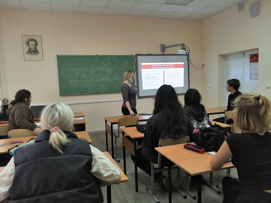 Студенты первого и второго курсов различных направлений подготовки были проинформированы о том, что основной причиной травмирования граждан в зоне движения поездов остаются собственная неосторожность и противоправные действия, совершаемые на территории железнодорожного транспорта. В том числе обучающимся рассказали о возможных последствиях «зацепинга», хулиганства и вандализма на объектах железнодорожной инфраструктуры, а также попросили быть бдительными в социальных сетях и не поддаваться влиянию мошенников, использующих несовершеннолетних для совершения терактов и диверсий.