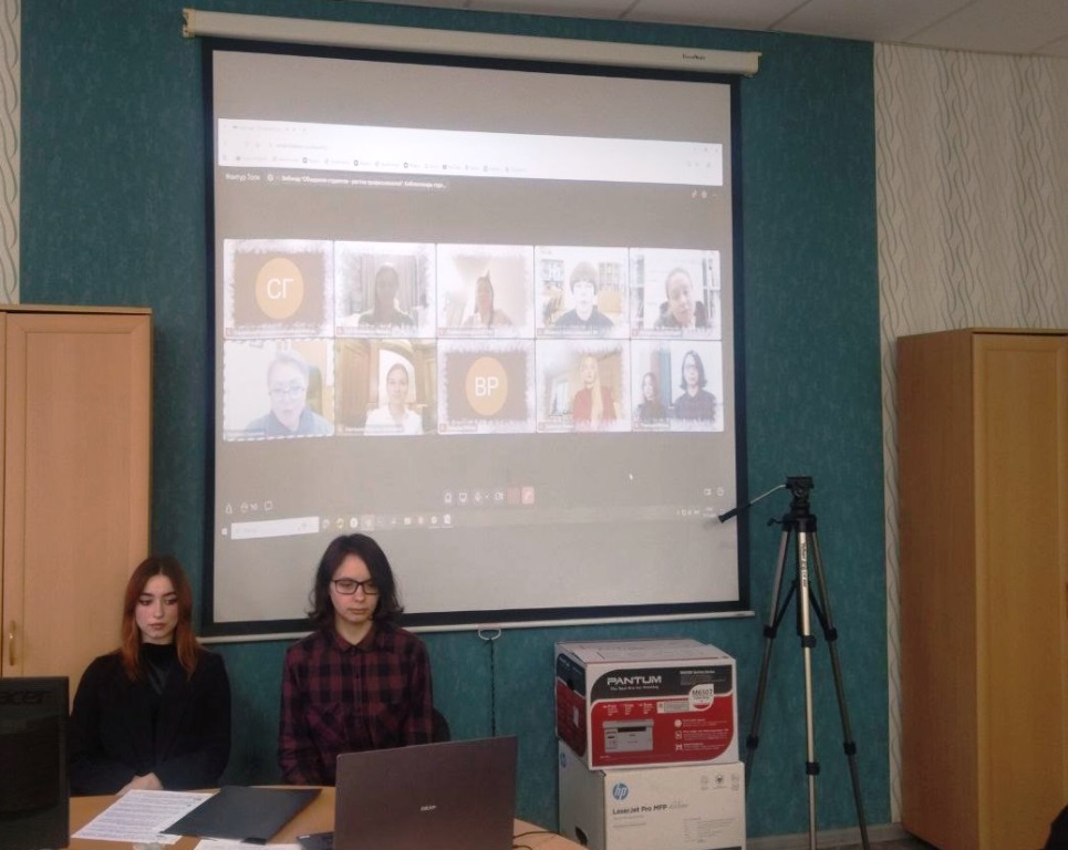На вебинаре выступили представители нашего вуза – студентка 3 курса направления подготовки «Библиотечно-информационная деятельность» Евгения Черненкова (научный руководитель – к.п.н., доцент, и.о. зав. кафедрой библиотечно-информационной деятельности Т.Н. Ладожина) и учащаяся 3-го курса специальности «Библиотековедение» Мария Романова (научный руководитель – ст. преподаватель кафедры библиотечно-информационной деятельности С.Ф. Павлова).