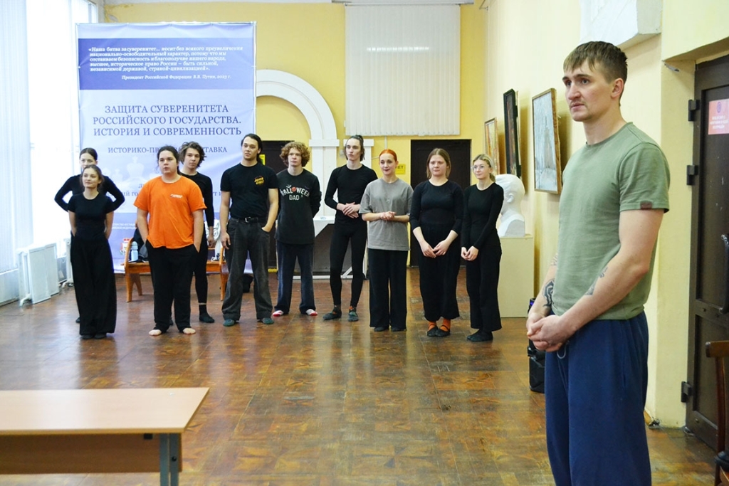 На днях Смоленский государственный институт искусств посетил участник образовательной программы "Герои СВОего времени. Смоленск" — Андрей Боедов. Он пришел на занятие по народно-сценическому танцу и посмотрел репетицию дипломного проекта Александра Новикова, показ которого состоится в феврале. Александр пригласил Андрея Боедова на свое театрализованное представление.
